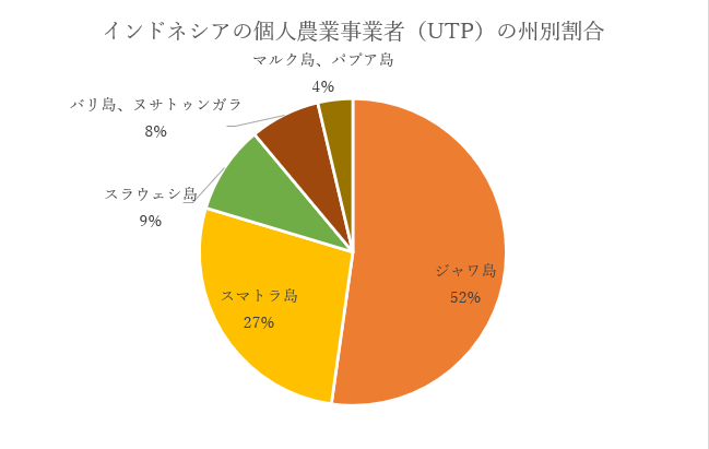 インドネシアにおける個人農業事業者(UTP)の州別割合は、以下の通りです。
