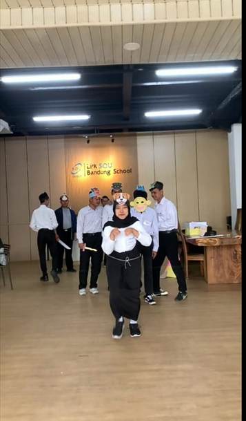 インドネシア現地の学校の生徒たちは、「桃太郎」を学ぶアクティビティラーニングを通じて「善と勇気で団結すれば、悪に打ち勝つことができる」というメッセージを学びました。